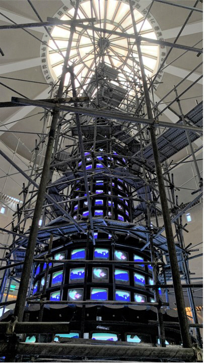 국립현대미술관 과천관에 설치된 비디오 아트의 창시자 백남준의 작품 ‘다다익선’이 4년간의 보존복원 작업을 끝내고 시험 운전을 하고 있다. 국립현대미술관 제공