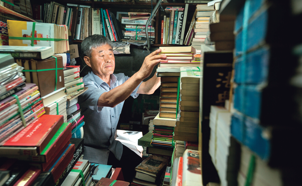정병호 씨가 서울 평화시장에서 40년 동안 운영해 온 헌책방 서문서점에서 책들을 살펴보고 있다.