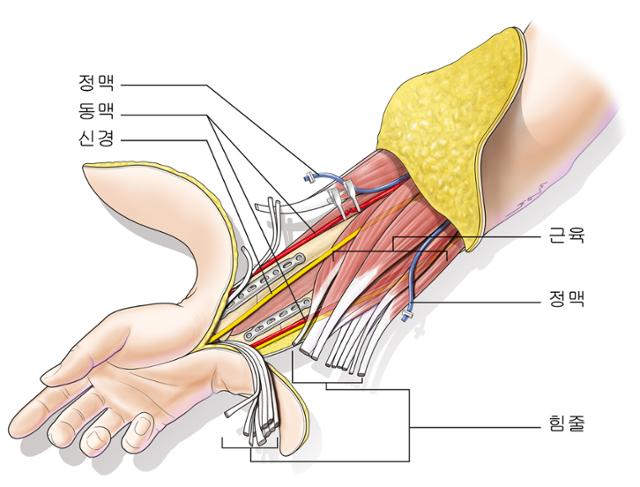 홍정원 교수는 “환자의 팔 기능이 유지되는 조직을 최대한 보호하면서 이식 거부감을 줄이는 동시에 기능을 유지할 수 있도록 수술 계획을 세웠다”고 했다.